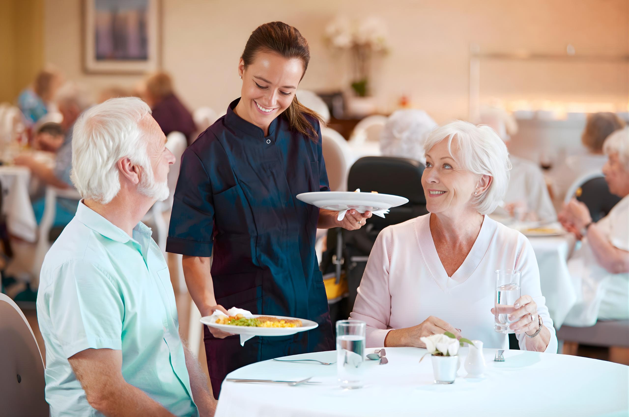 Flexible meal plans and options provide variety; cafes and dining rooms make shared meals easy, while amenities like fitness rooms, pools and salons enrich daily life.